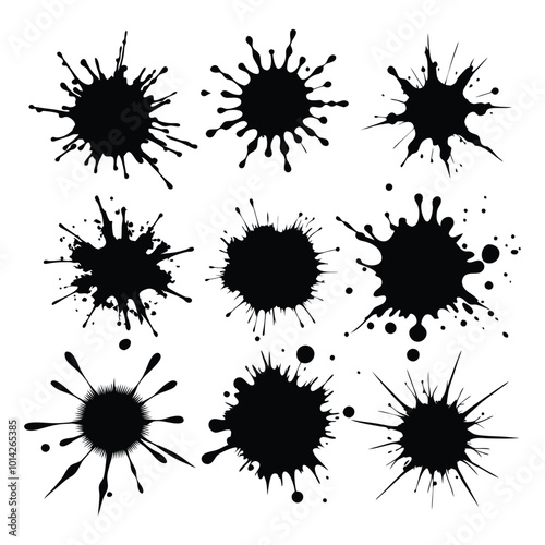 This captivating silhouette splatter stain set vector offers vibrant, artistic splashes perfect for creative designs, backgrounds, posters, and digital projects.