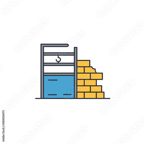 well, water, brick, wall, broken, damaged, structure, mechanism, hook, illustration, icon, symbol, graphic, vector, outline, drawing, simple, minimal, blue, yellow, grey, water supply, at water level, drought, flood, crisis, problem, solution, construction, building, repair, maintenance, old, rural, infrastructure, resource, environment, scarcity, engineering, architecture, danger, safety, emergency, development, home, ruin, foundation