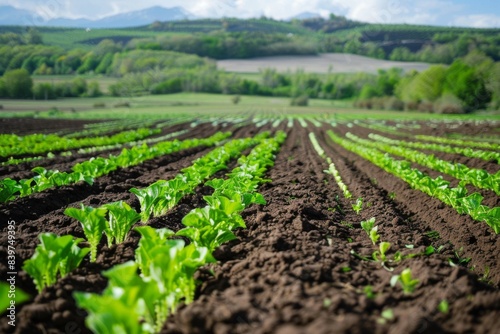 This concept showcases a vibrant green natural landscape under a cloudy sky, featuring diverse plantations that serve as cash crops in the agriculture industry. The scene captures the essence of.