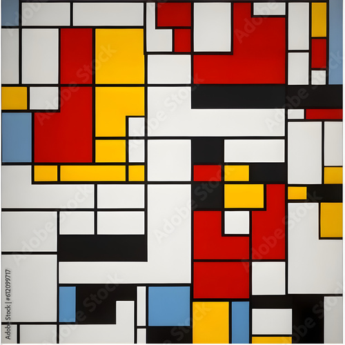 This design features clean lines and vibrant geometric shapes, such as squares and rectangles, arranged in a symmetrical yet harmonious pattern. It is suitable for bed sheets and laptop laminations.