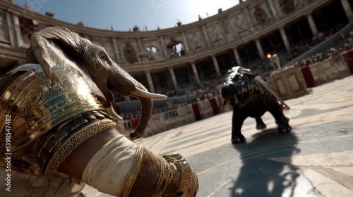 gladiator, arena, elephant, coliseum, excitement, armoring, beast, drama, atmosphere, battle, ancient, history, combat, strength, tension, sport, courage, entertainment, competition, spectacle, power, majesty, crowd, mythology, heroism, grandeur, tradition, wildlife, culture, heroism, strategy, warrior, direction, artistry, engagement, thrilling, heritage, performance, domination, ferocity, animal