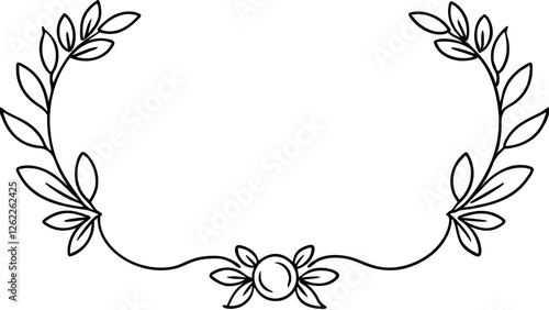 This elegant vector features a symmetrical, ornate frame with delicate leaf motifs and flowing lines, perfect for adding a touch of sophistication to invitations, labels, or decorative projects