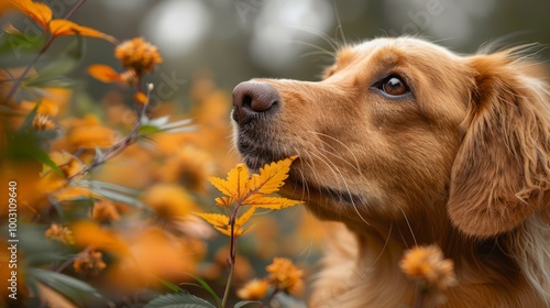 retriever, dog, autumn, foliage, garden, flower, outdoors, sniffing, orange, pet, animal, serene, afternoon, vibrant, beautiful, companionship, happiness, curiosity, plant, warm, colours, calmness, exploration, environment, portrait, loyal, playfulness, season, wildlife, fur, expression, relaxation, joyful, sweetness, scenery, pet, care, canino, breathing, joy, bark