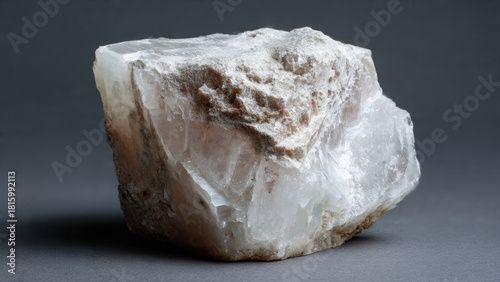 mineral, rock, crystal, specimen, stone, geology, white, semitransparent, opaque, rough, crystalline, natural, textured, raw, massive, irregular, fragment, geologic, unprocessed, unpolished, inorganic, solid, earth science, closeup, macro, studio shot, dark background, grey background, science, nature, formation, mineralogy, aggregate, pale, robust