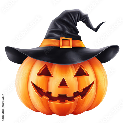 This is a cheerful jack-o'-lantern with a witch's hat, ready for Halloween fun!