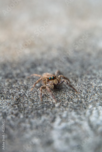 This is a macro photo of a spider. spider macro photo, jumping spider photo, close-up photo of spider.