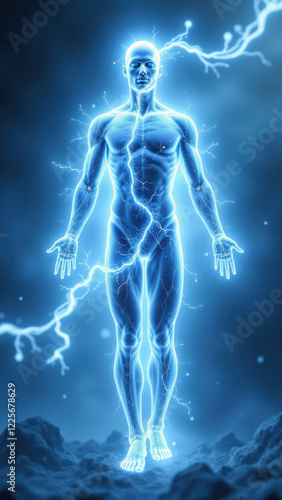 energy, electricity, science fiction, health care, wellness, power, bod, abstract, symbolic, futuristic, technology, blue light, lightning bolt, spiritual