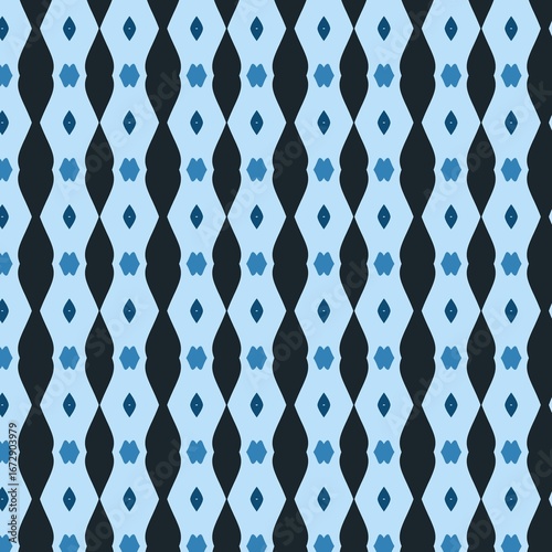 pattern, seamless, background, abstract, geometric, texture, repeating, design, wallpaper, textile, print, fabric, vertical, stripes, column, wavy, organic, diamond, shape, motif, stylised, ornament, blue, dark blue, light blue, black, monochromatic, shades, colours, ethnic, tribal, folk, art, artistic, decorative, creative, modern, traditional, elegant, graphic, damask, surface