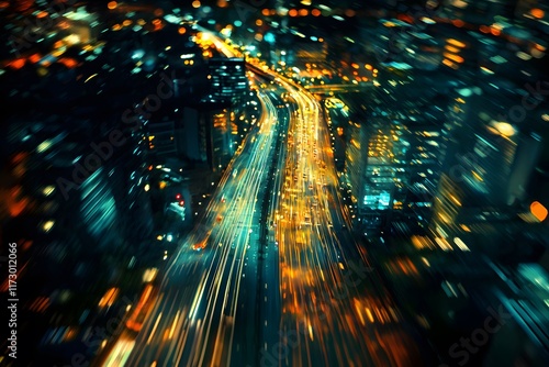 This sentence captures the essence of a vibrant city at night, emphasizing the urban elements and the visual appeal of the illuminated skyline