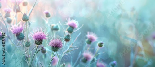 Thistle Cirsium isolated green bagground in summer for wallpaper (tidsel) pastel background. with copy space image. Place for adding text or design