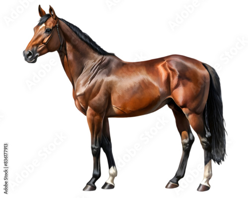 Thoroughbred Horse Front View Illustration, Bay Color, Isolated on White Background, Ideal for Equestrian and Nature Design Projects
