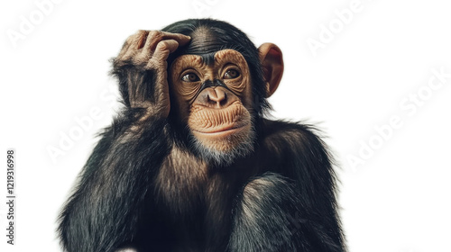Thoughtful Chimpanzee Exhibiting Curiosity and Introspection While Scratching Head Against Transparent Background in Natural Posing Style