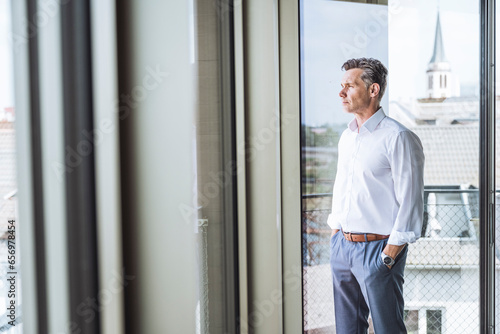 Thoughtful mature businessman standing by window in office