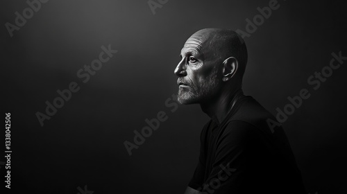 profile, man, mature, thoughtful, serious, pensive, portrait, greyscale, black-and-white, image, photo, photo, face, head, expression, emotion, dark, light, shadow, sharpened, detail, seriousness, dignity, thought, vision, contemplation, loneliness, sorrowful, wisdom, age, bald, beard, clothing, male, human, emotion, mood, introspection, still life, artistic, art, visionary, perception, observation, humanity, dignified, composed, calm