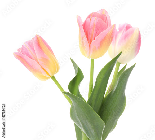 Three beautiful colorful tulips isolated on white