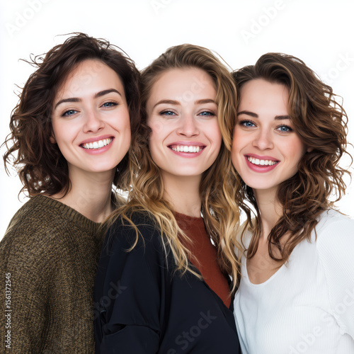 Three Beautiful Women Smiling Together , white background cut out PNG