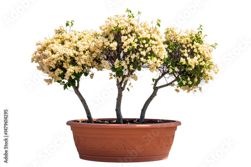 Three Beige bougainvillea tree in pot, isolated on transparent background