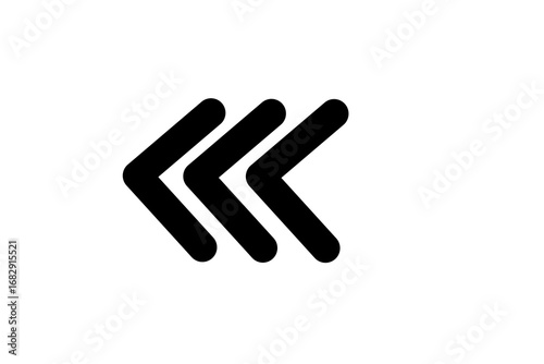 Three black left pointing arrows symbol for rewind, backward, previous, navigation, and direction graphic projects