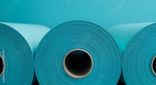 Three blue rolls of on a blue background fabric textile cylindrical