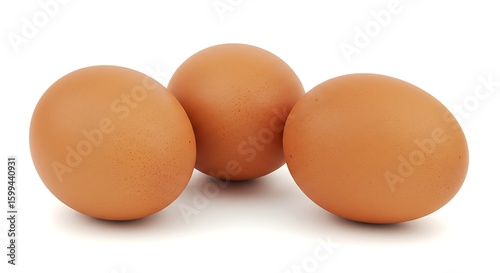 Three Brown Eggs on White, Simple Food Still Life, Fresh Farm Eggs