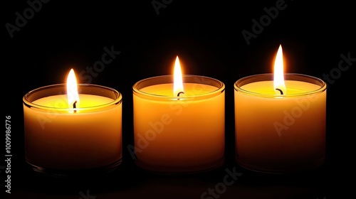 Three candles lit in the dark. A photo of candles to symbolize hope, remembrance, or a peaceful moment.