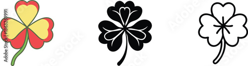 Three Clover Leaf Variations Colorful, Black, and Outline Designs