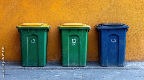 bin, recycling, waste, disposal, green, yellow, blue, container, plastic, urban, street, environment, sustainability, garbage, community, public, infrastructure, environmental, ecology, conservation, pollution, reduction, compost, organic, inorganic, trash, separated, sorted, coloured, marked, designated, waste management, material, reuse, reduce, renewable, efficient, sustainable, clean, order, system, organised