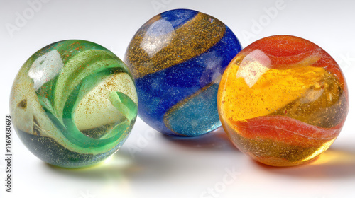 Three Colorful Glitter Marbles on White Background