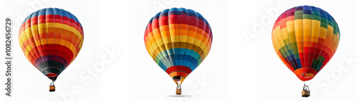 Three colorful hot air balloons are displayed against a white background.