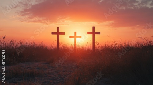 three crosses at sunset