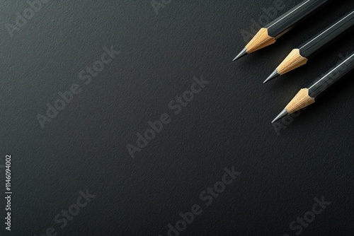 Three Dark Pencils on Black Background: Minimalist Graphite Still Life