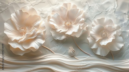three, delicate, white, paper, flower, intricate, detail, texture, background, elegant, hand-made, model, artwork, motif, showpiece, creative, showcase, artistic, beauty, decor, handcraft, floral, honed, craftwork, design, display, symbol, concept, pattern