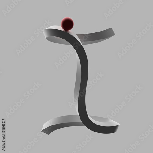 three, dimensional, render, red, sphere, balancing, letter, digitally, generated, image, plain, grey, colours, three-dimensional, shape, smooth, calligraphy, writing, balance, nobody, simplicity, bend, rendering, illustration