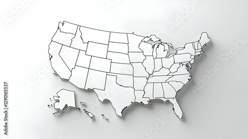 us, map, us, country, geography, state, america, white, background, model, border, outline, political, region, location, atlas, illustration, design, graphic, territory, national, continental, north america