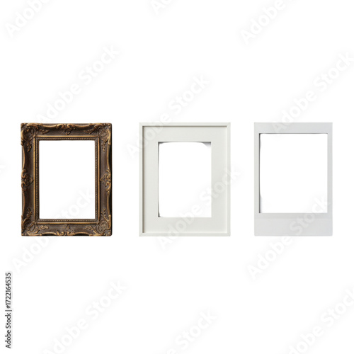 Three diverse frames showcase art styles, offering a versatile choice for showcasing memories, photos, or design mockups with vintage, modern, and instant photo options