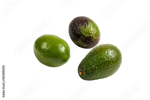 Three fresh avocado fruits isolated on transparent background
