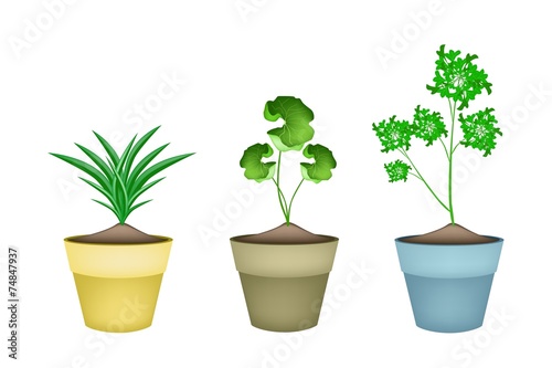 Three Fresh Herbal Plant in Ceramic Flower Pots