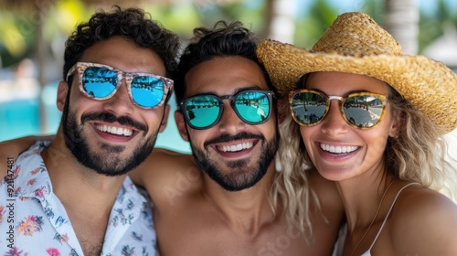 friends, beach, photo, smile, sunglasses, joy, fun, summer, carefree, posing, happiness, playful, sunny, laughing, outdoors, cheerful, oneness, vacation, bonding, vibrant, socialising, lively, tropical, travel, relaxing, modern, stylish, togetherness, sea, leisure, adventure, sunlit, scenic, youthful, blithe, calmness, upbeat, colourful