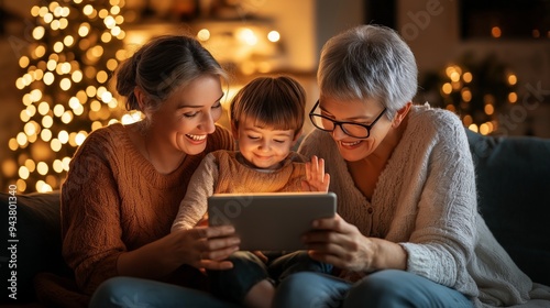 family, generation, tablet, grandmother, mother, children, holiday, technology, bonding, togetherness, joyful, christmas, cosy, warmth, festive, holiday, tradition, digital, device, smiling, love, home, celebration, happiness