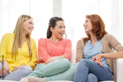 three girlfriends having a talk at home