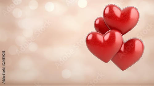 nubes, heart, red, love, romance, valentine, day, romantic, festive, celebration, holiday, glossy, shiny, three, floating, peach, background, blurred, soft, pastel, affection, passion, tenderness, caring, couple, human relationships, symbol, emotion, feeling, design, graphic, illustration, abstract, three-dimensional, rendering, digital, art, image, photo, visual, texture, glistering, sparkle, light, bright, beautiful, pretty, cute