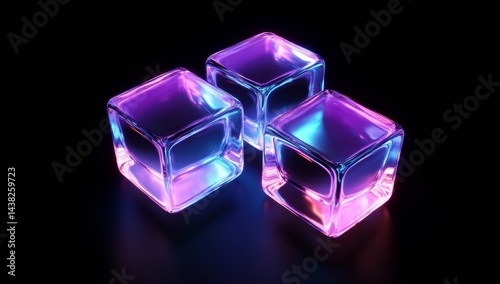 Three glowing cubes in vibrant colors