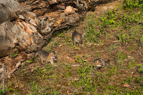 Three Grey Fox Kits (Urocyon cinereoargenteus) Play by Log