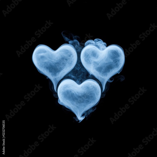 three hearts made of smoke on a black background