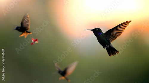 hummingbird, bird, flying, nature, wildlife, sunset, colourful, green, blurred, silhouette, exotic, tropical, beautiful, fauna, floral, red, bloom, insect, outdoors, blooming, flower petals, pollination, high-coloured, contrast, sharp, motion, detail, wing, feather