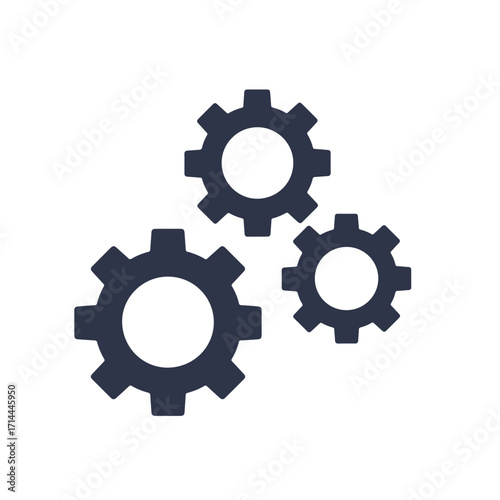 Three interlocking gears of varying sizes on a white background, depicted as a flat icon
