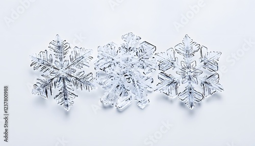 Three Intricate Ice Crystal Snowflakes Arranged in a Row