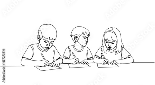 drawing, paper, education, children, school, studying, learning, writing, student, children, study, table, classroom, notebook, crayons, homework, childhood, activity, young, elementary, sharpened, lesson, development, academic, cognition, together, assignment, creativity, monochrome, line art, vignetting, minimal, simple, outline, single line, linear, graphic, whiteboard, black-and-white, educational, teaching, design element, illustration, artistic, children, creative