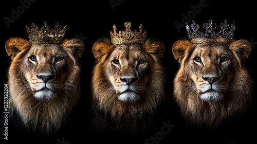 Three Majestic Lions Wearing Crowns
