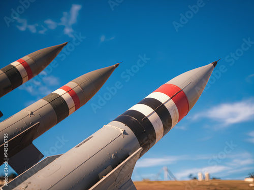 Three missiles weapons rockets on a blue sky